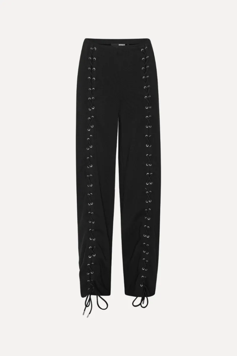 The Lacing Sweatpants feature a high-rise fit with lace-up detailing running down the front of both legs. Designed with an elasticated waistband and cuffed hems, these pants bring a bold, structured element to soft jersey comfort.