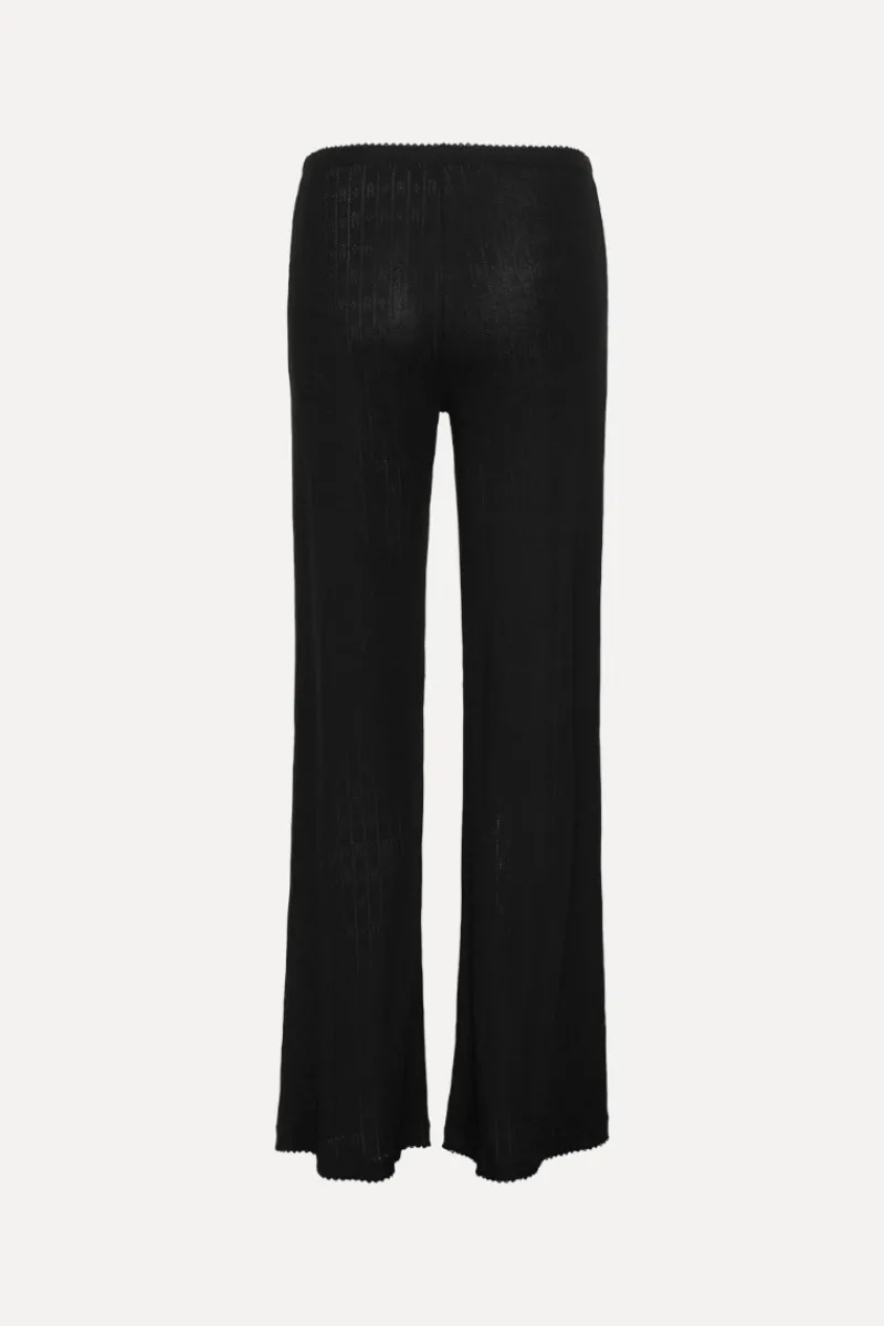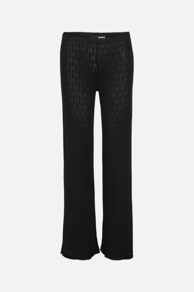 Pointelle Leggings Black feature a full-length silhouette with a fitted shape. Designed with an elasticated waistband and detailed with an all-over pointelle pattern forming vertical stripes and small R logos. Matches perfectly with the Pointelle Fitted T-shirt Black and the Pointelle Fitted Top Black.