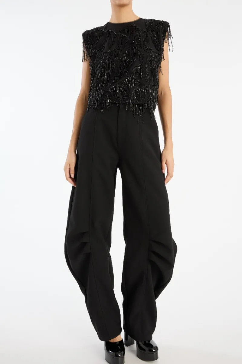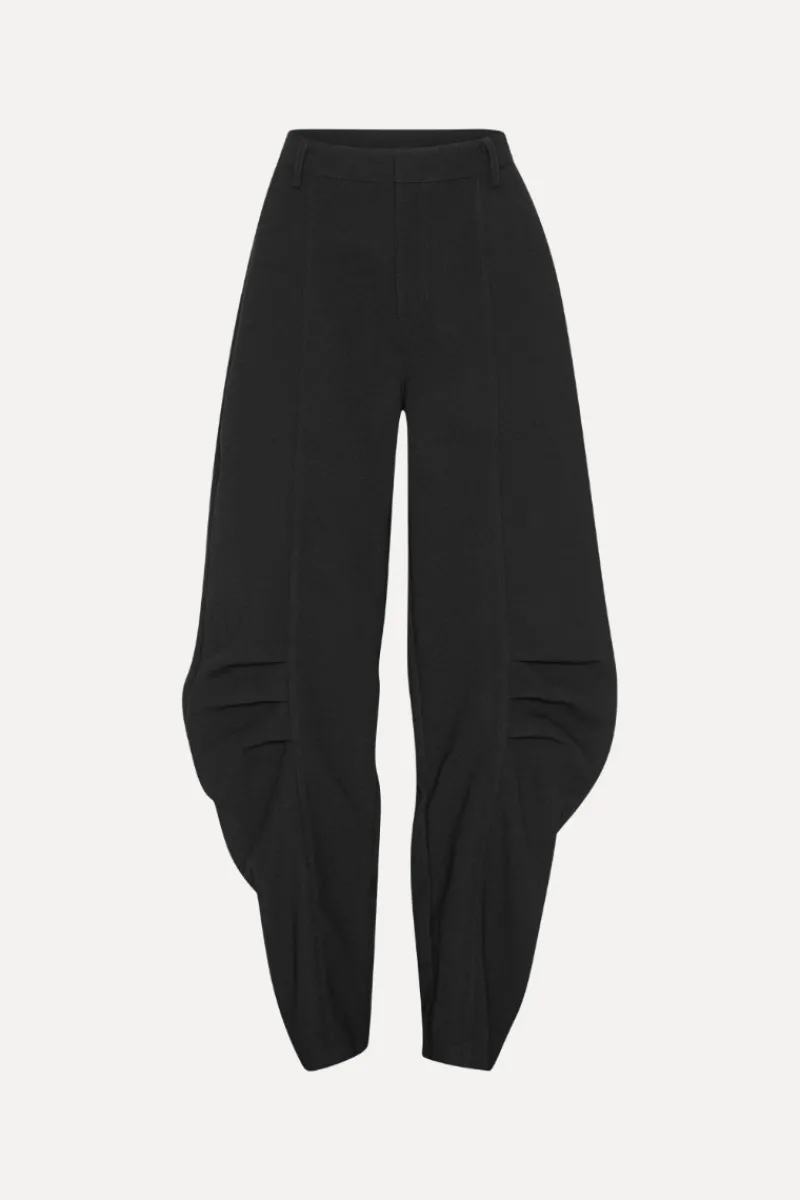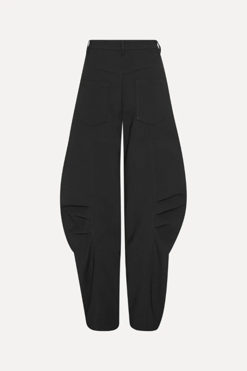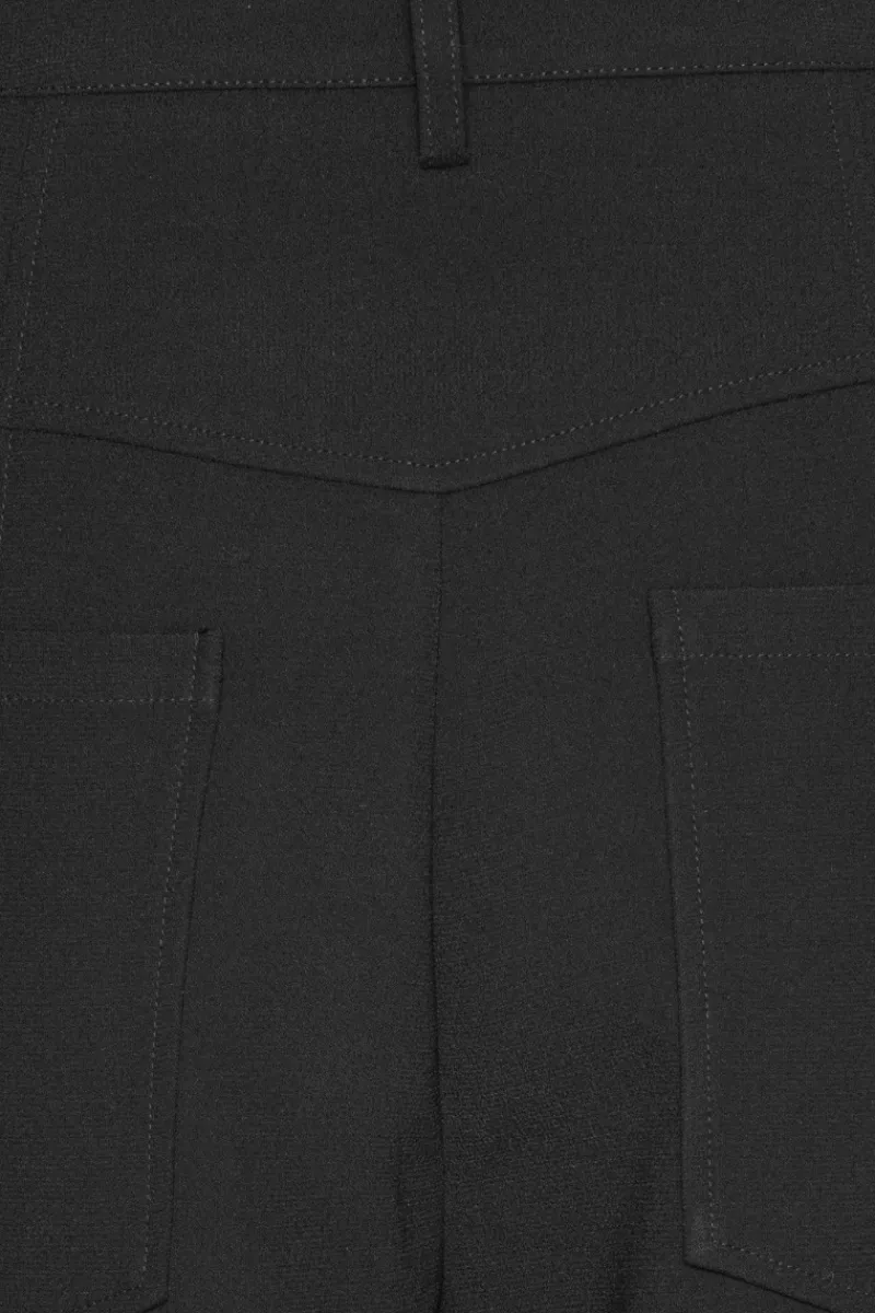 Suiting Cargo Pants Black are tailored pants with a sculptural silhouette. The design features a fitted waist, pressed creases, two front pockets and two patch pockets at the back. Belt loops are placed at the waist.