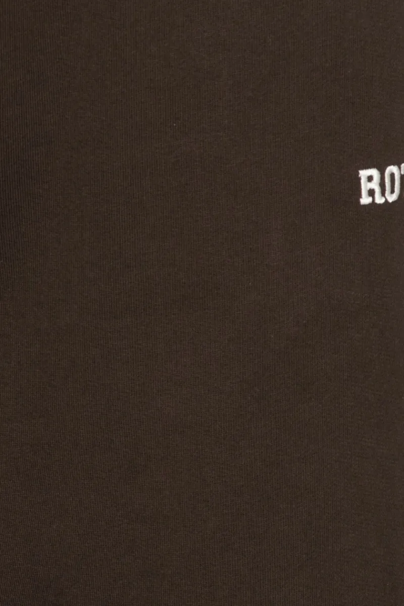 Heavy Straight Sweatpants Dark Brown are designed with a high elasticated waistband, straight leg, and side seam detailing. The sweatpants feature a small ROTATE logo placed on the left hip.
