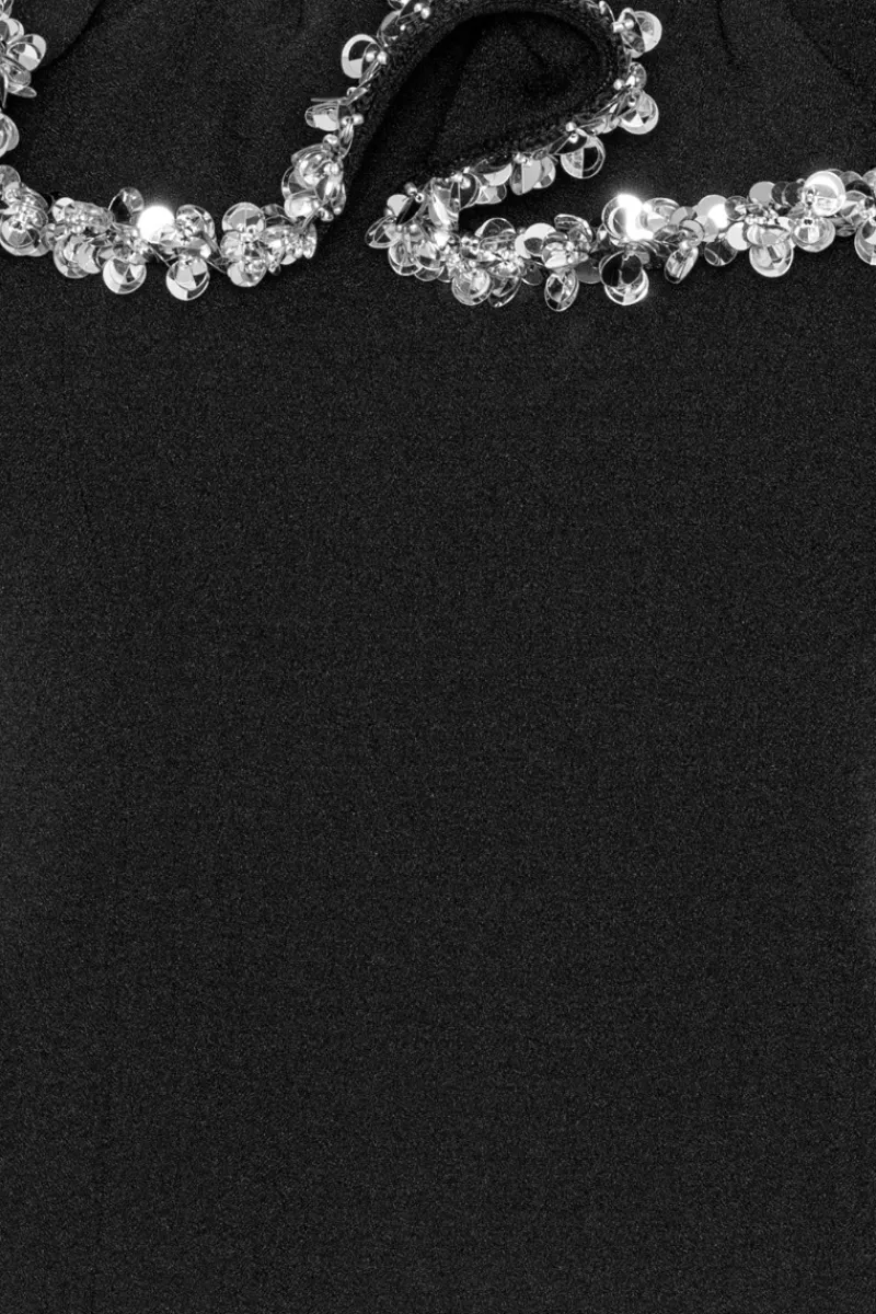 Crepe Ruffle Top Black is made from structured crepe in a fitted silhouette with off-the-shoulder ruffle detailing. The ruffle is decorated with shimmering sequins and pearls, and the top fastens with a zip at the back. It has lining.